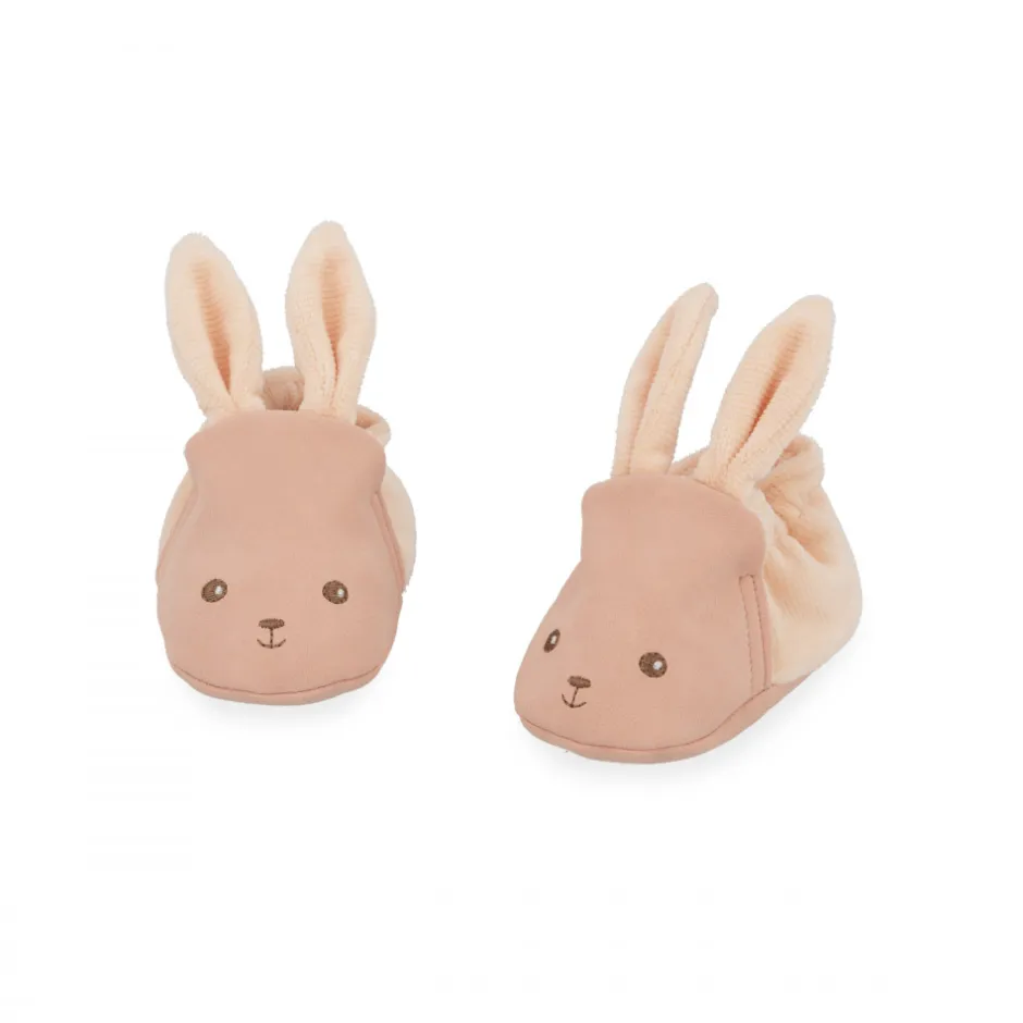 Les chaussons roses pêche pour bébé, assortis au doudou et à l’anneau de dentition, conviennent aux enfants de 0 à 6 mois (ils mesurent 11 cm de long). Bi-matières, avec du velours côtelé et de la suédine, ils sont confortables et trop craquants aux pieds de bébé avec leurs petites oreilles de lapin ! Ils feront fondre toute la famille, portés à l’occasion d’un shooting photo pour annoncer la naissance du tout-petit, par exemple.
